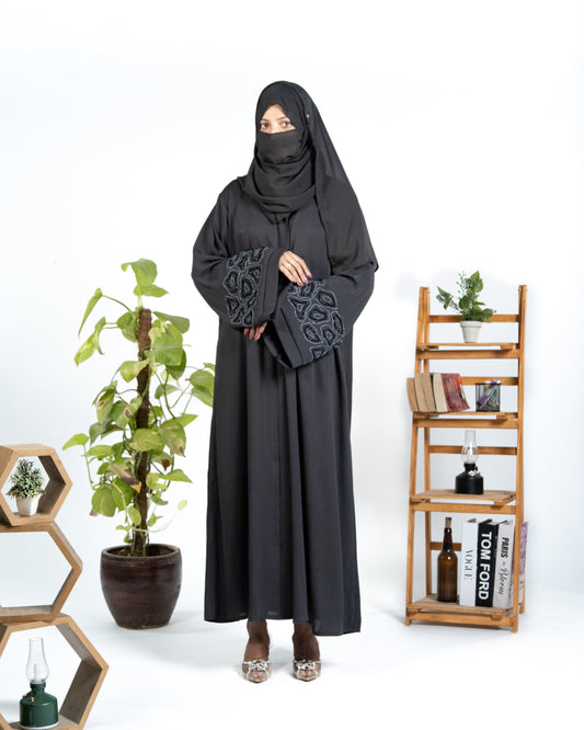 Areeba || Mid-Night Black Abaya || Manjan Fabric
