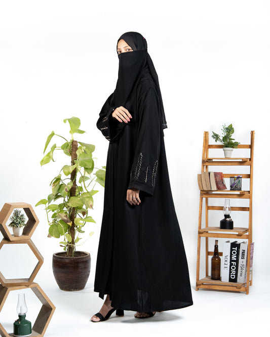 Areeba || Mid-Night Black Abaya || Manjan Fabric