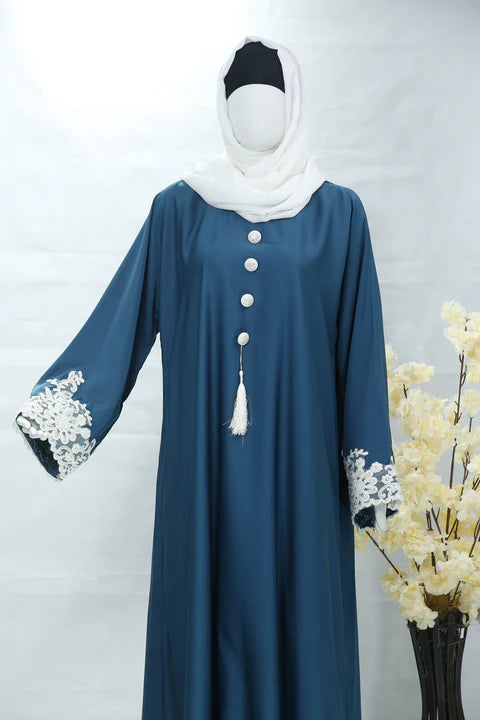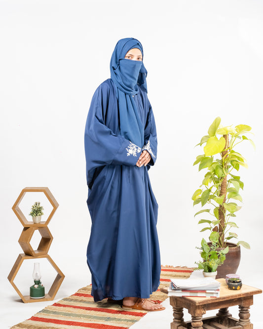 Farah || Embroidered Blue Abaya || Nida Fabric